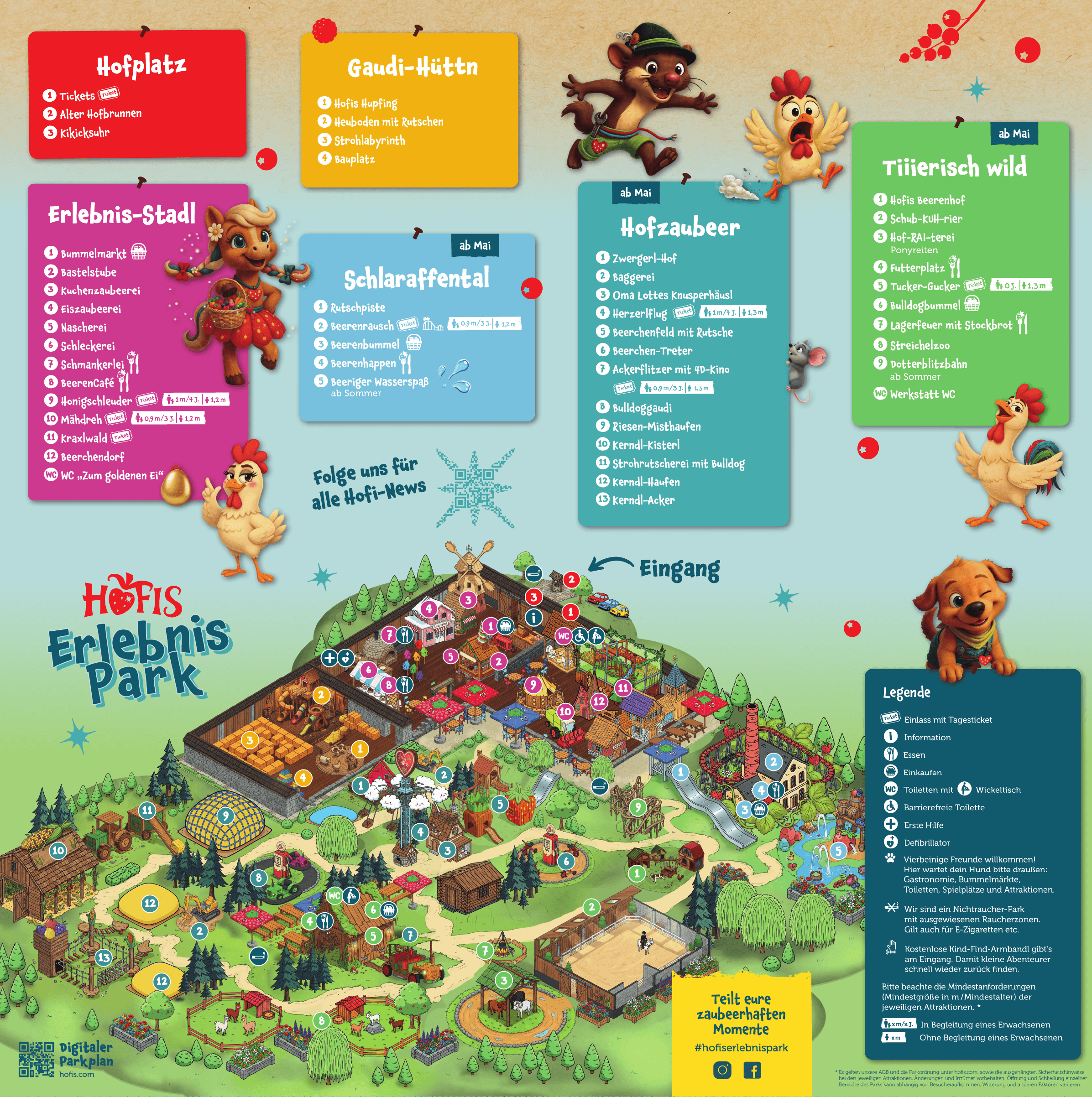 Die Preise für Tagestickets sind aktuell dynamisch und können sich je nach Besucheraufkommen sowie dem Fortschritt weiterer Attraktionen bis zur großen Eröffnung noch anpassen. Unser Tipp: Sichere dir jetzt deine Jahreskarte! Wir schenken dir den gesamten April 2026 – die Laufzeit startet erst ab dem 30.04.2026 und ist dann volle 365 Tage gültig. Extra Vorteil: Teste Hofis Erlebnispark ganz entspannt mit einem Tagesticket. Wenn es dir gefällt, wird dir der Ticketpreis beim Kauf einer Jahreskarte am selben Tag vollständig angerechnet. Achtung, das geht nur BEVOR Eure Tageskarten entwertet wurden!